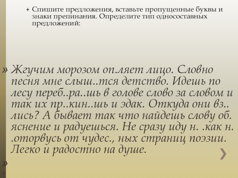 Слайд 5Спишите предложения, вставьте пропущенные буквы и знаки препинания. Определите тип