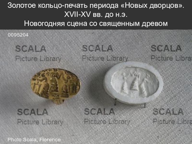 Слайд 11Золотое кольцо-печать периода «Новых дворцов». XVII-XV вв. до н.э. Новогодняя сцена