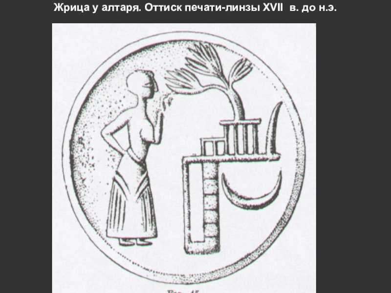 Слайд 7Жрица у алтаря. Оттиск печати-линзы XVII в. до н.э.