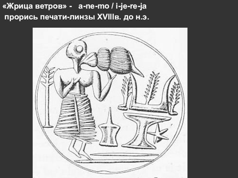 «Жрица ветров» -  a-ne-mo / i-je-re-ja  прорись печати-линзы XVIIIв. до н.э.