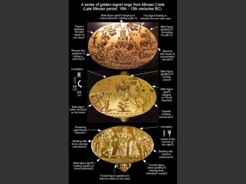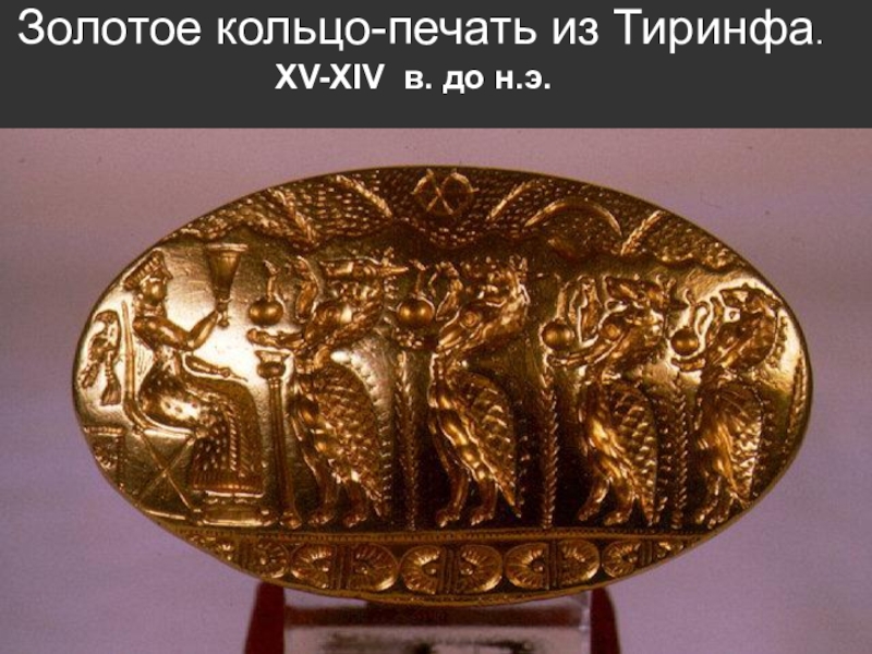 Слайд 25Золотое кольцо-печать из Тиринфа. XV-XIV в. до н.э.