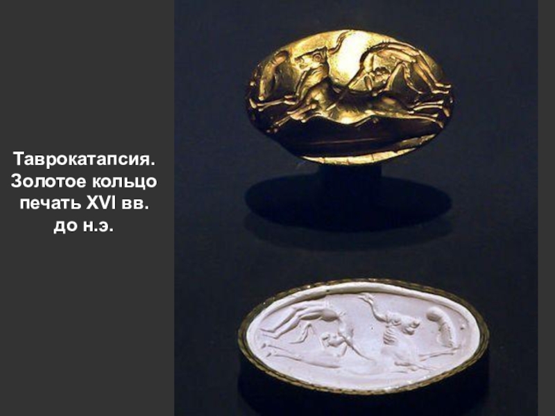 Слайд 10Таврокатапсия. Золотое кольцо печать XVI вв. до н.э.