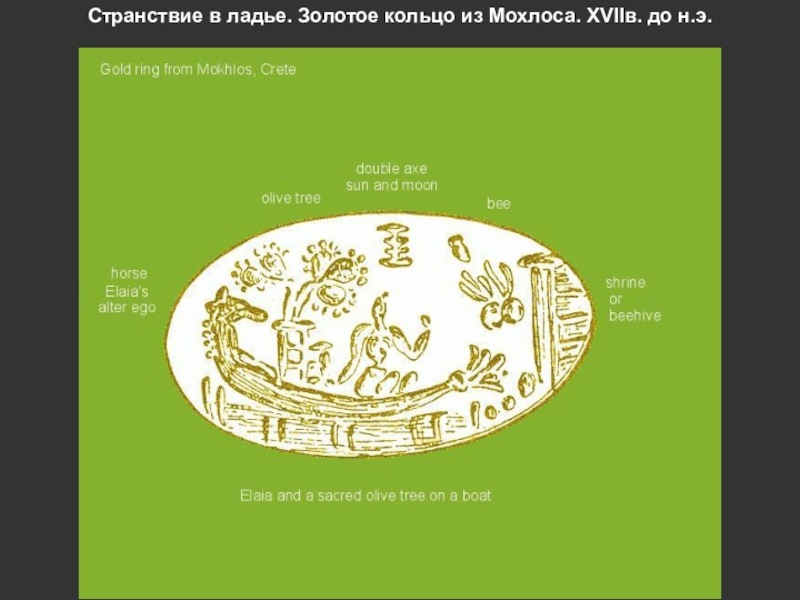 Слайд 16Странствие в ладье. Золотое кольцо из Мохлоса. XVIIв. до н.э.