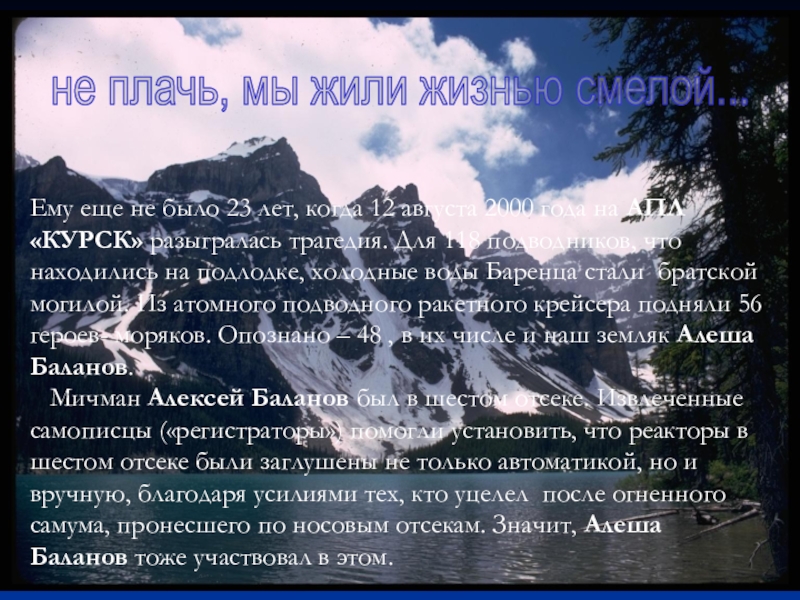 не плачь, мы жили жизнью смелой...