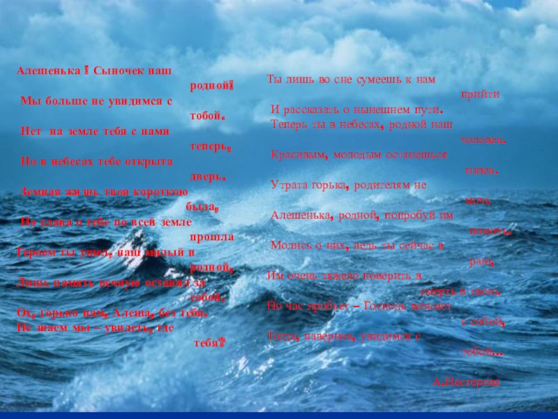 Теперь ты в небесах, родной наш