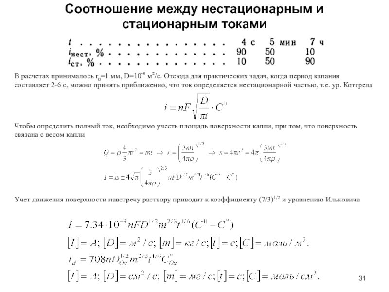 Слайд 31Соотношение между нестационарным и стационарным токами