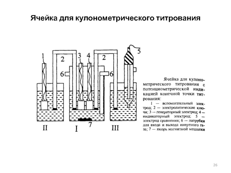 Слайд 26Ячейка для кулонометрического титрования