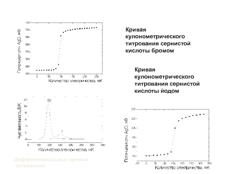 Слайд 22Кривая кулонометрического титрования сернистой кислоты бромом