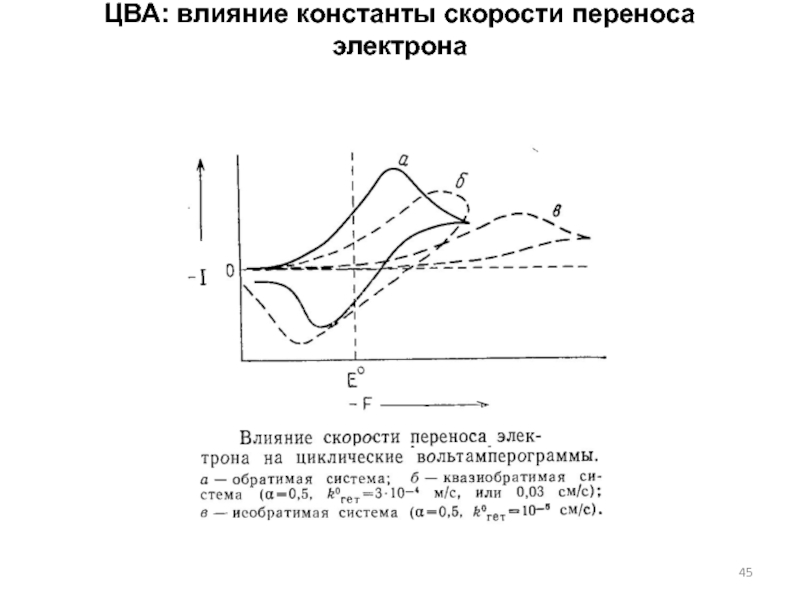 Слайд 45ЦВА: влияние константы скорости переноса электрона