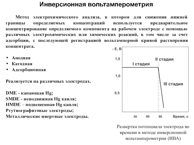 Слайд 47В инверсионно-вольтамперометрическом анализе можно выделить 3 основные стадии: