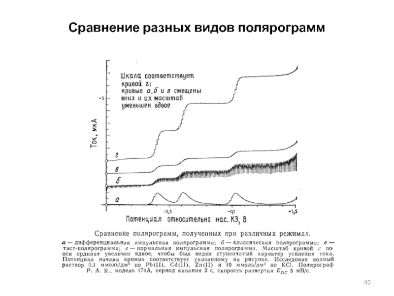 Слайд 40Сравнение разных видов полярограмм