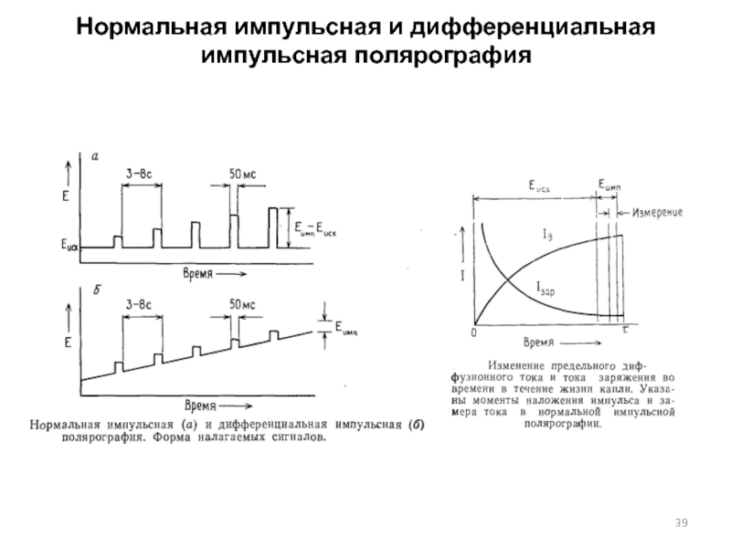 Слайд 39Нормальная импульсная и дифференциальная импульсная полярография
