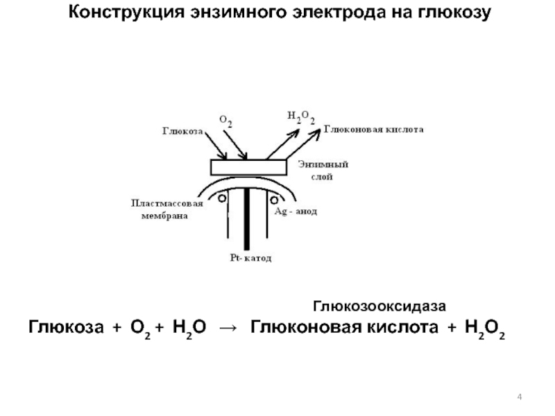 Слайд 4 Конструкция энзимного электрода на глюкозу
