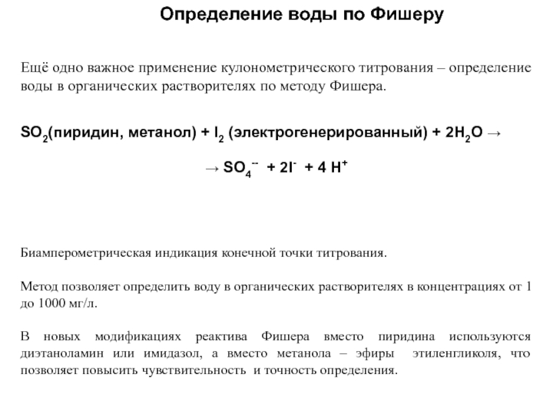 Слайд 23Определение воды по Фишеру
