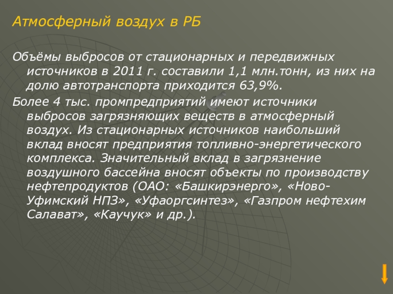 Слайд 13Атмосферный воздух в РБ