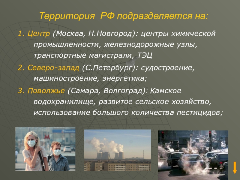 1. Центр (Москва, Н.Новгород): центры химической промышленности,