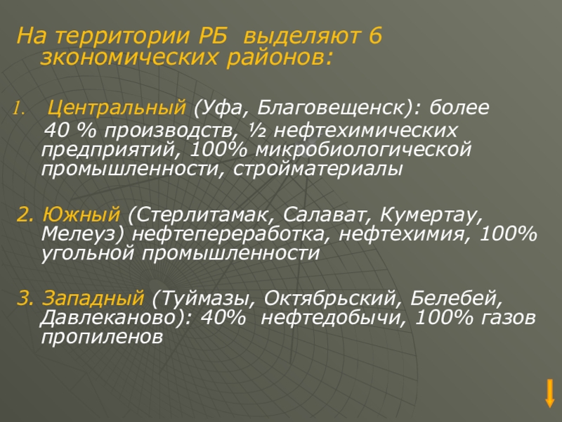 3. Западный (Туймазы, Октябрьский, Белебей, Давлеканово): 40% нефтедобычи, 100% газов пропиленов