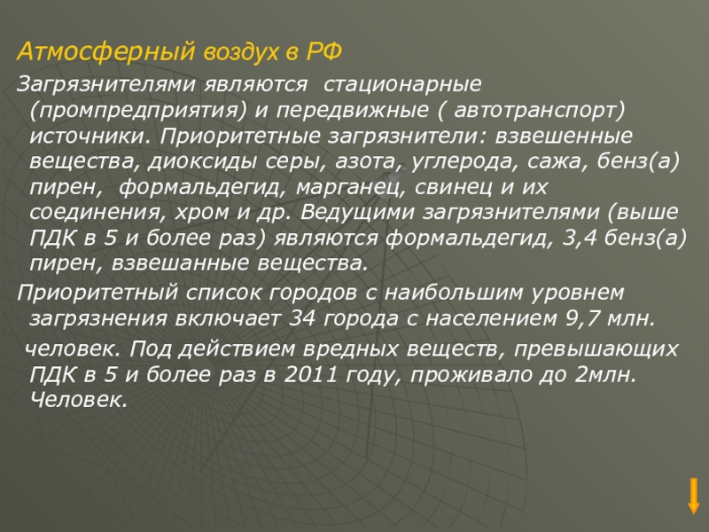 Слайд 5Атмосферный воздух в РФ