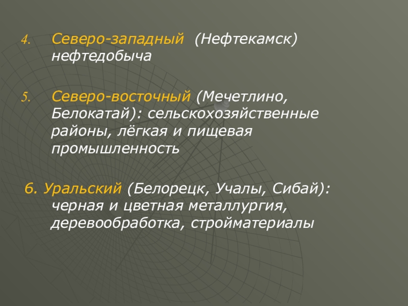 Северо-восточный (Мечетлино, Белокатай): сельскохозяйственные районы, лёгкая и пищевая