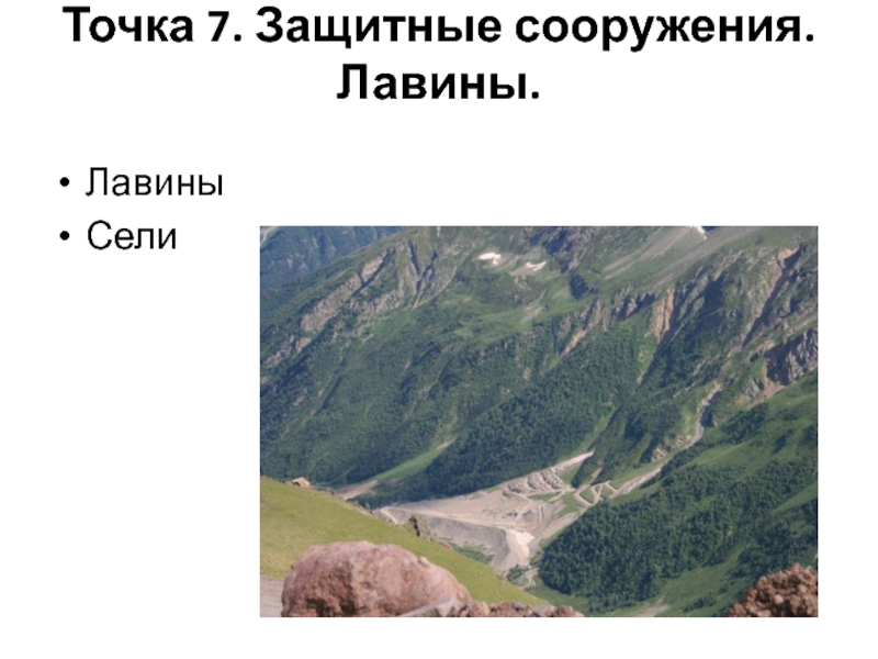 Слайд 11Точка 7. Защитные сооружения. Лавины.