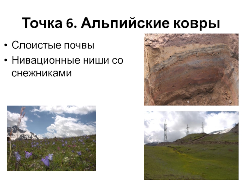 Точка 6. Альпийские коврыСлоистые почвыНивационные ниши со снежниками