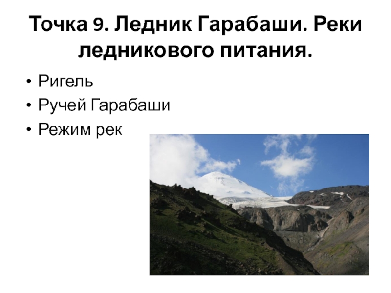 Слайд 13Точка 9. Ледник Гарабаши. Реки ледникового питания.