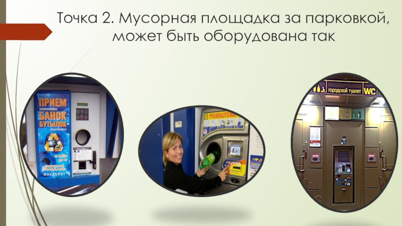 Слайд 10Точка 2. Мусорная площадка за парковкой, может быть оборудована так