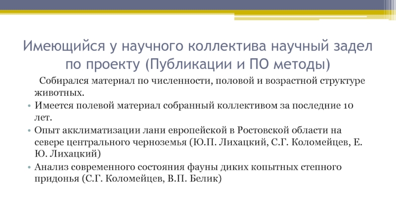 Слайд 13Имеющийся у научного коллектива научный задел по проекту (Публикации и