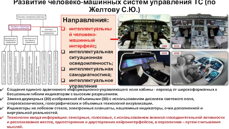 Развитие человеко-машинных систем управления ТС (по Желтову С.Ю.)