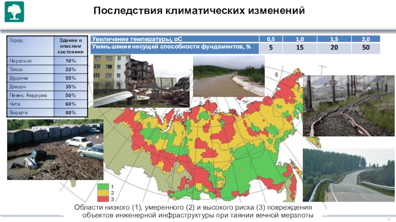 Адаптация объектов транспортной инфраструктуры к изменению климата. Снижение рисков чрезвычайных ситуаций природного характера (экстремальных перепадов температуры, выпадения осадков, штормов, лесных пожаров, селей, карста, таяния «вечной мерзлоты» и др.) на объектах до безопасного уровня.