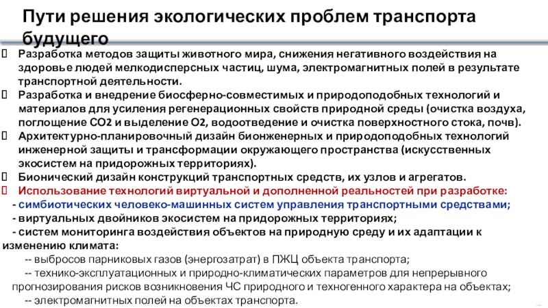 Обеспечение экологической устойчивости транспортных систем, объектов и технологий.