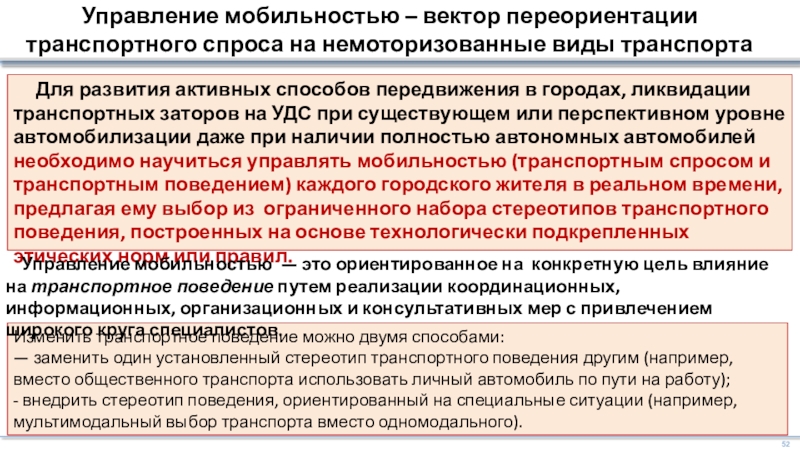 Управление мобильностью, изменение мотивации транспортного поведения