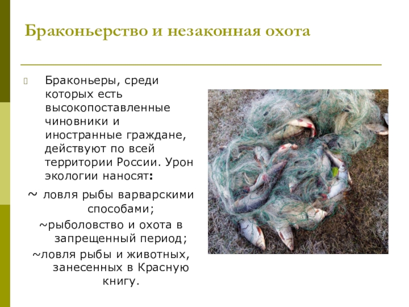 ~ловля рыбы и животных, занесенных в Красную книгу.