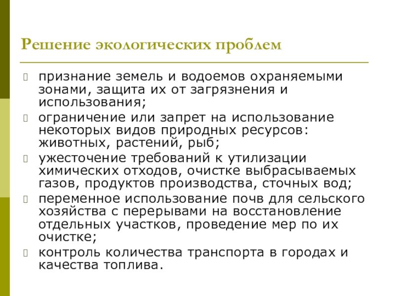 ужесточение требований к утилизации химических отходов, очистке выбрасываемых газов, продуктов производства, сточных вод;