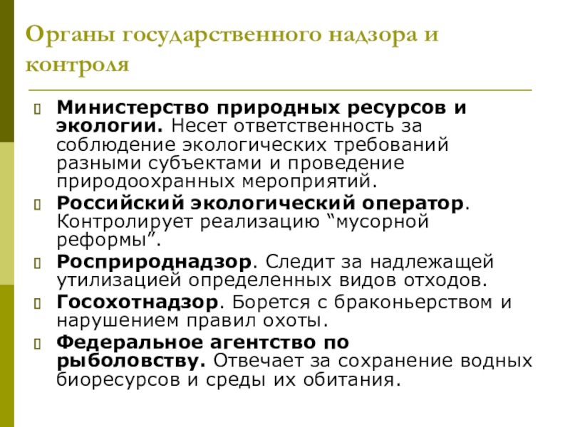 за соблюдение экологических требований разными субъектами и проведение природоохранных мероприятий.