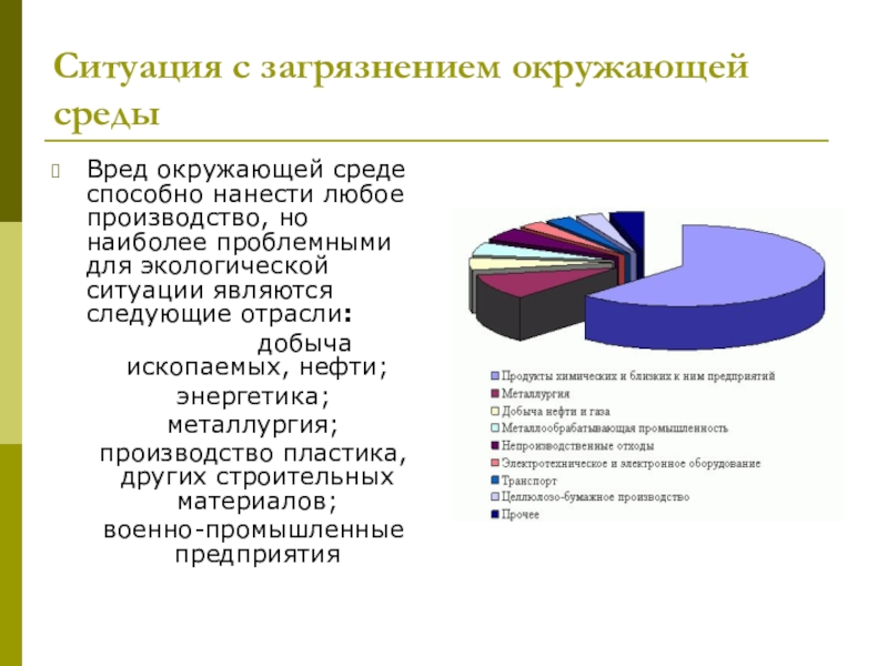 производство, но наиболее проблемными для экологической ситуации являются следующие отрасли: