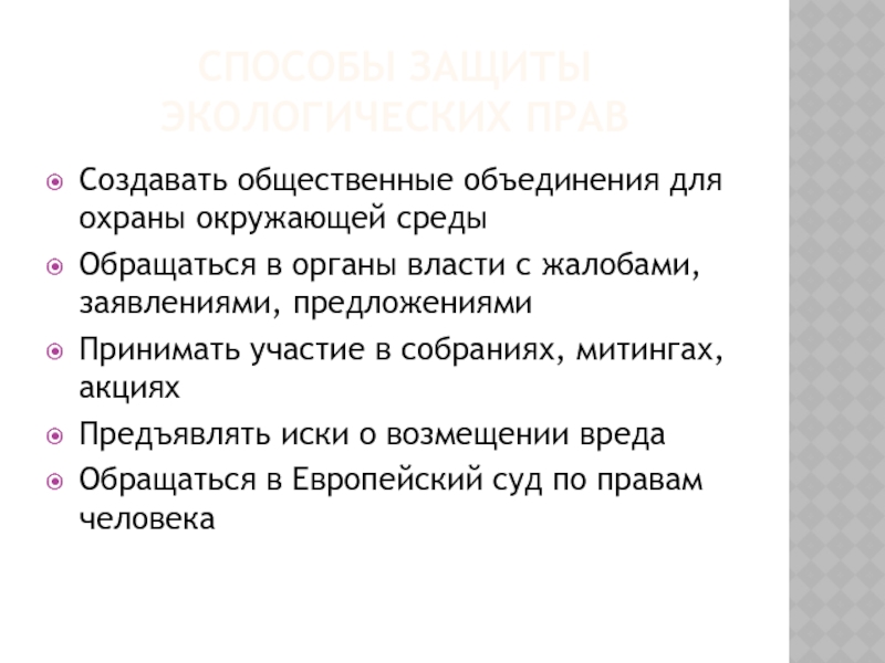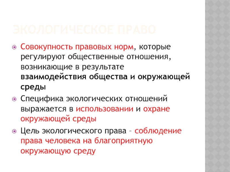 Цель экологического права – соблюдение права человека на благоприятную окружающую среду