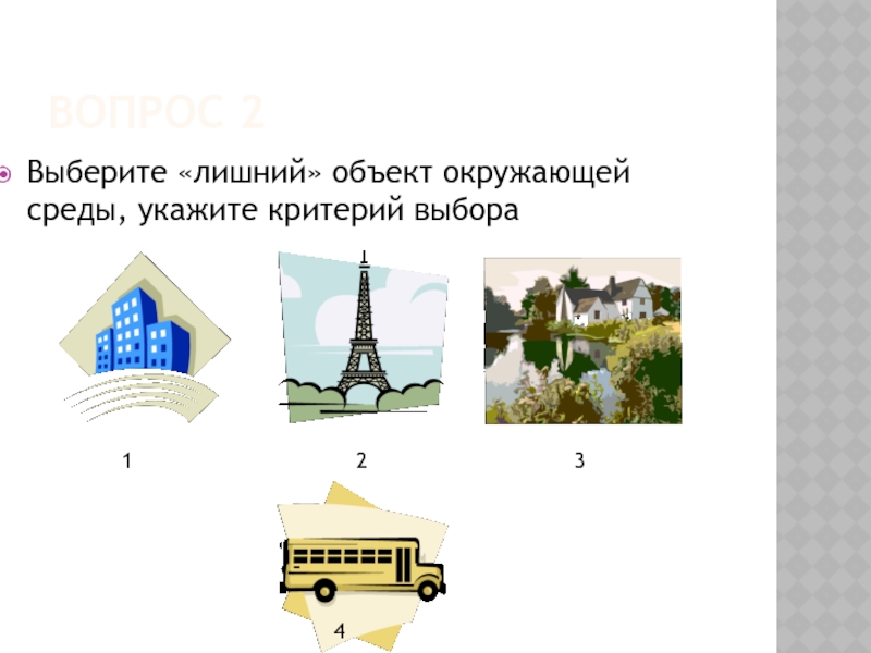 Выберите «лишний» объект окружающей среды, укажите критерий выбора