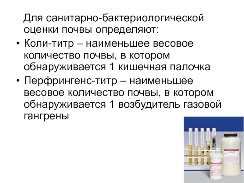 Слайд 30 Для санитарно-бактериологической оценки почвы определяют:
