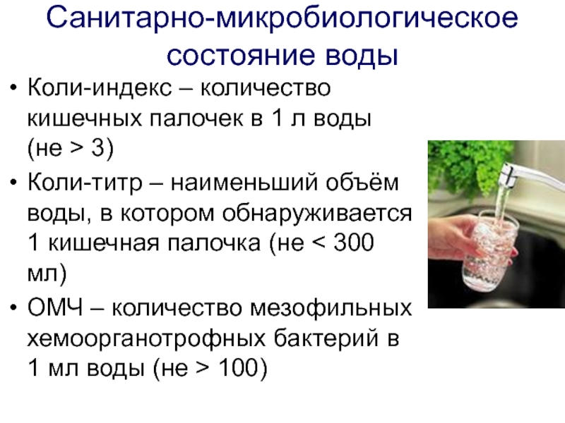 ОМЧ – количество мезофильных хемоорганотрофных бактерий в 1 мл воды (не > 100)