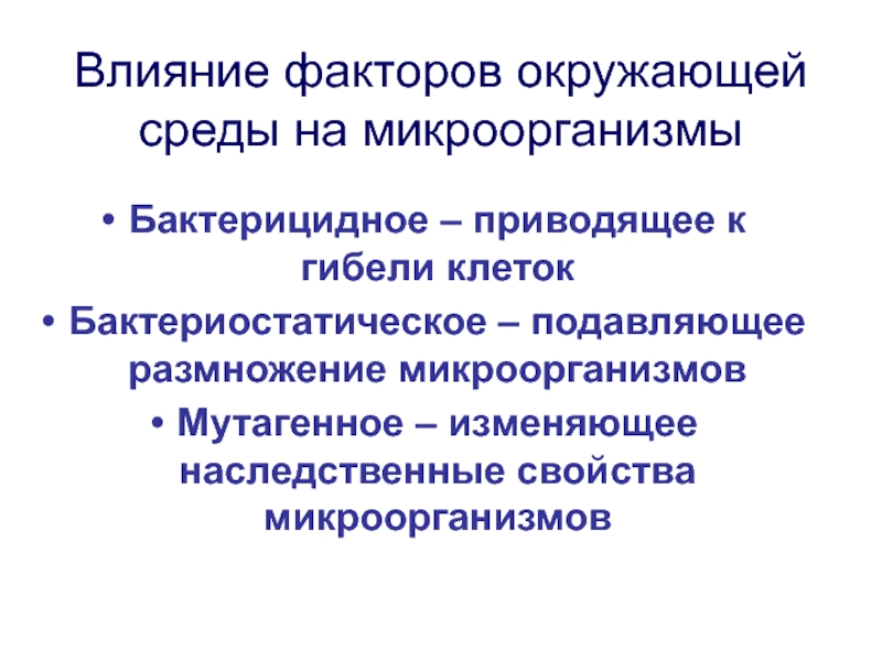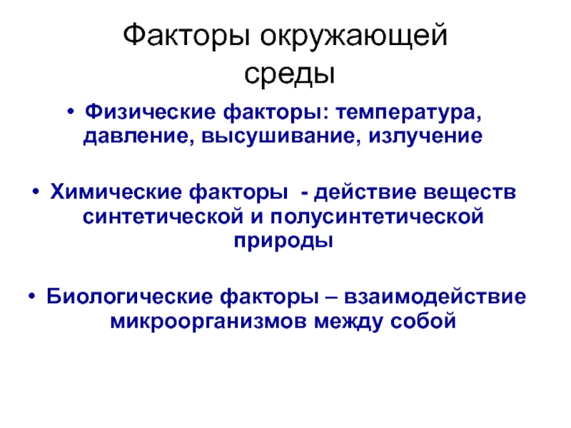 Слайд 2Влияние факторов окружающей среды на микроорганизмы