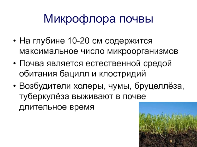 На глубине 10-20 см содержится максимальное число микроорганизмов