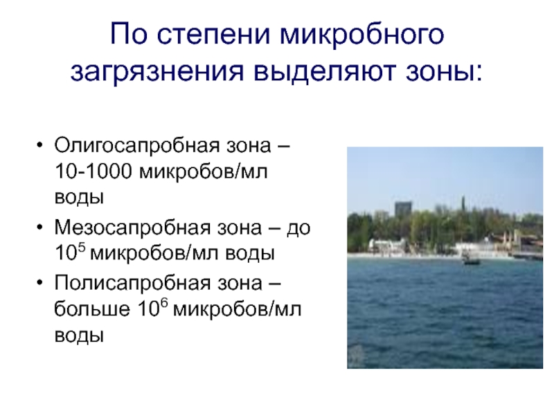 Слайд 24По степени микробного загрязнения выделяют зоны: