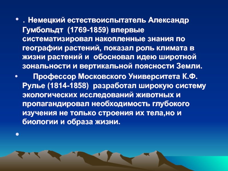 обосновал идею широтной зональности и вертикальной поясности Земли.