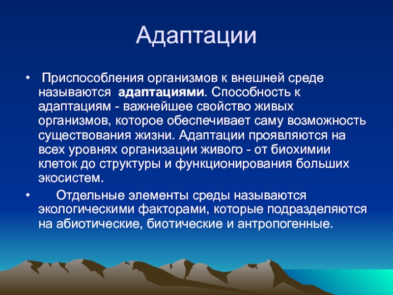 адаптациям - важнейшее свойство живых организмов, которое обеспечивает саму возможность