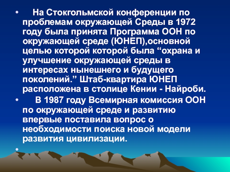 1972 году была принята Программа ООН по окружающей среде (ЮНЕП),основной