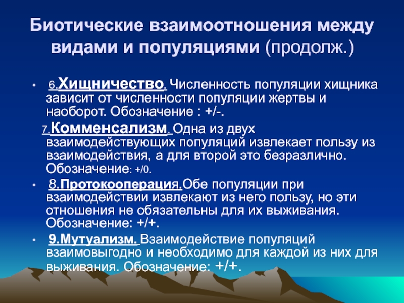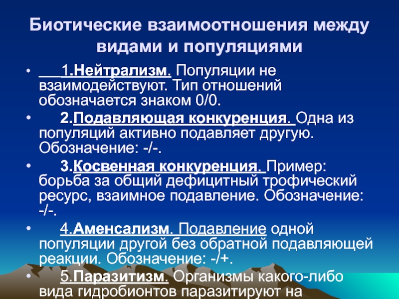 Слайд 20Биотические взаимоотношения между видами и популяциями (продолж.)
