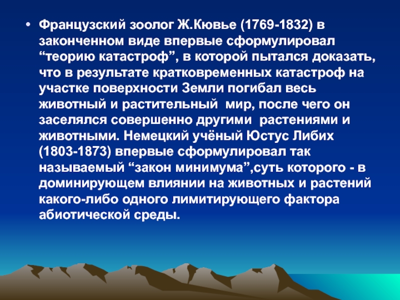 Слайд 8Французский зоолог Ж.Кювье (1769-1832) в законченном виде впервые сформулировал “теорию