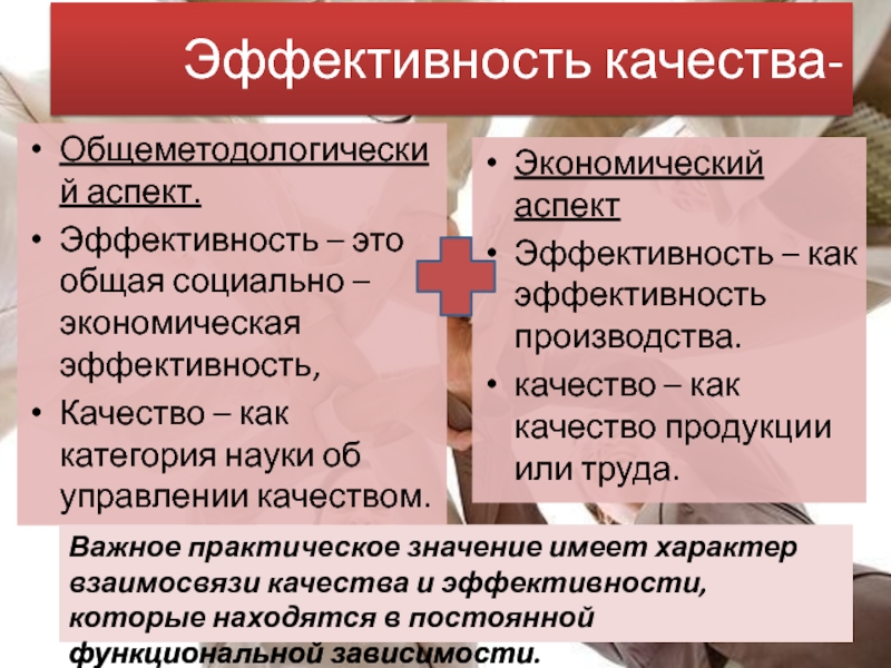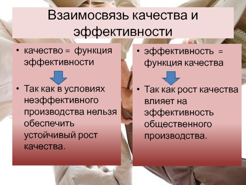 Важное практическое значение имеет характер взаимосвязи качества и эффективности, которые находятся в постоянной функциональной зависимости.