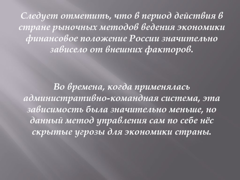 времена, когда применялась административно-командная система, эта зависимость была значительно меньше, но данный метод управления сам по себе нёс скрытые угрозы для экономики страны.